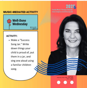 Dr. Kern also contributed easy, repeatable music-mediated activities for caregivers and educators. From “Well-Done Wednesday” prompts (like creating a “Success Song Jar”) to everyday sing-along rituals, each activity is designed to boost confidence, communication, and joy.